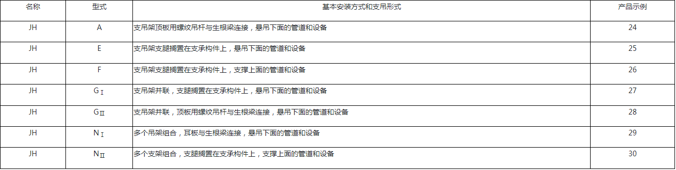 主辅弹簧式恒力弹簧支吊架的基本型式(表5)
